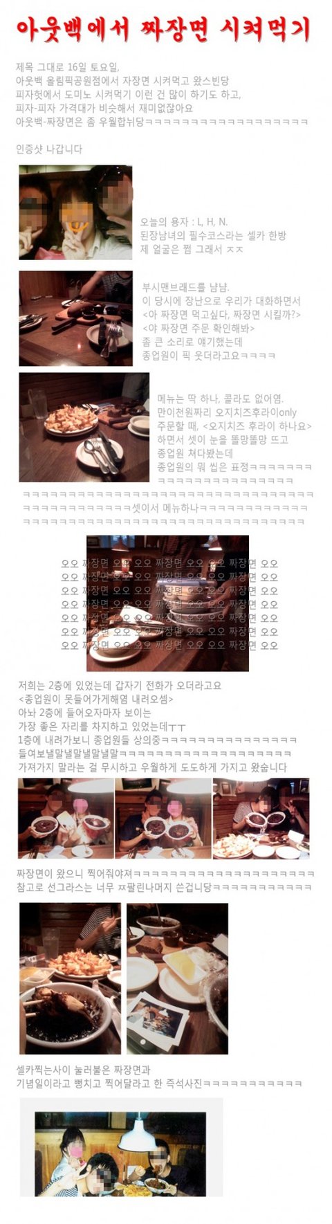 1회 아웃백에서 짜장면 시켜먹기(사진有)