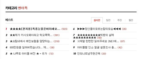 또 투애니원이 네이트 여신이란 말은....진짜 슬퍼요