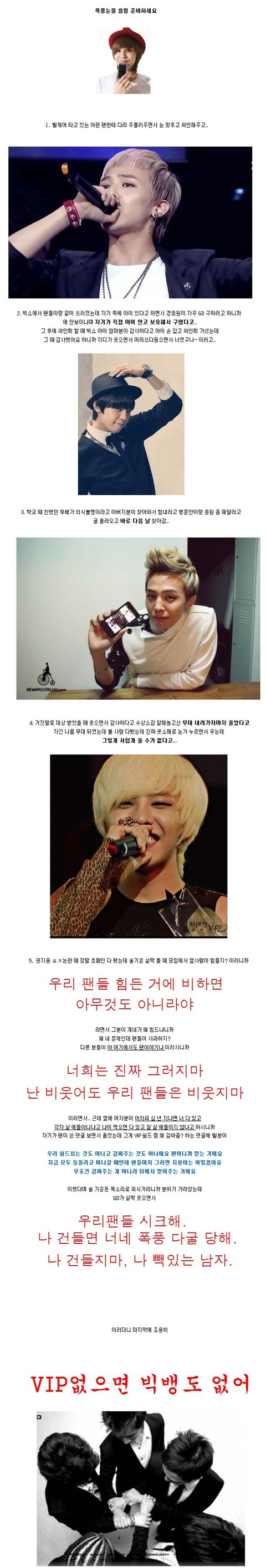 어떤 착하신 톡커님이 쪽지로 여깃던 글 지우시고 말투둥글게하는 게 VIP랑 GD한테 더 도움이될거라고해서 그렇게햇습네당ㅋ! 밑분말보시고 악플쓰신 분들도 반성하세요 빠순이빠순이하지만말고ㅋ