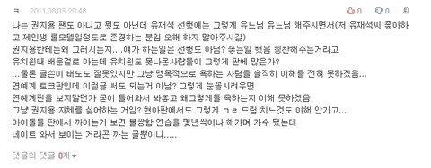 ㅇㅇ나VIP에요 근데 내가 무조건 권지용을 찬양해라!!!!!!!뭐 이딴식의 목적으로 올린거아니거든요ㅎㅎ 그냥무대윗모습만보고 GD 싸가지없네, 도도하네 하는 거 오해좀풀려고올린거에요 제가 님들같이 악플에만 뭐라햇지 비판ㅇ하신분들보곤 뭐라안햇잖아요