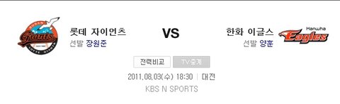 오늘 경기일정 보니까 롯데랑 한화랑 경기 있는데