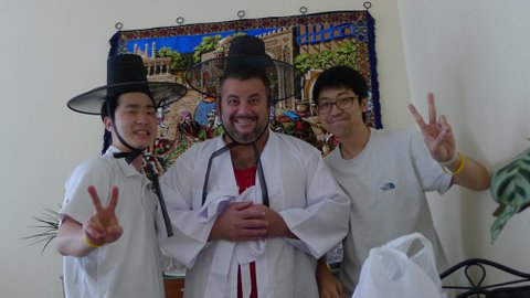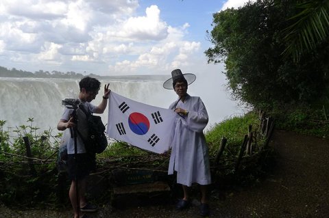 그리고 두루마기와 갓을 쓰고 한국을 알리기 위한 짧은 필름들을 제작하며 여행하고 있습니다.