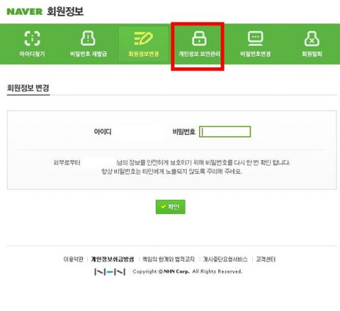 5.개인정보 보안관리 클릭!!
