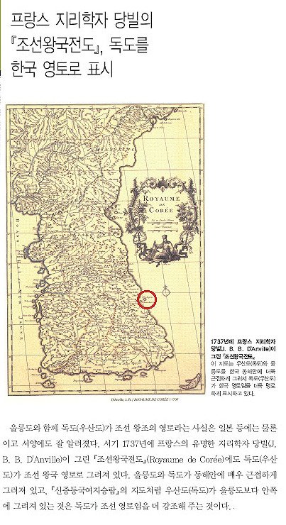 1737년 프랑스 지리학자 '당빌' 이 그린 '조선왕국전도'