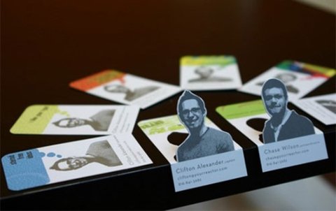 테이블 위에서 일어서는 명함