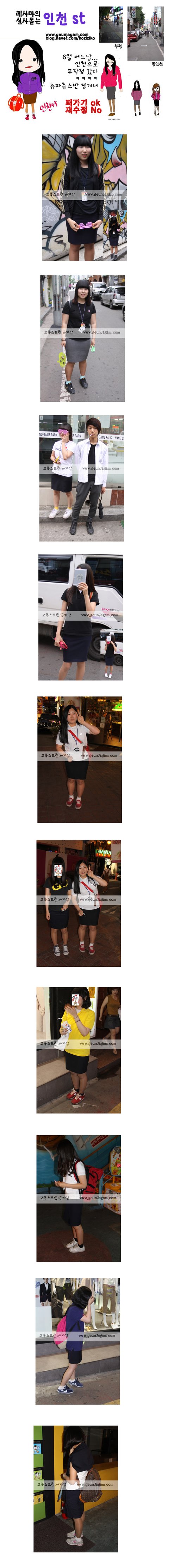 그나마 인천이 젤 낫네~ 치마길이두 적당하고 상의 쫄두 아니고, 남자들 쫄스키니두 아니고~