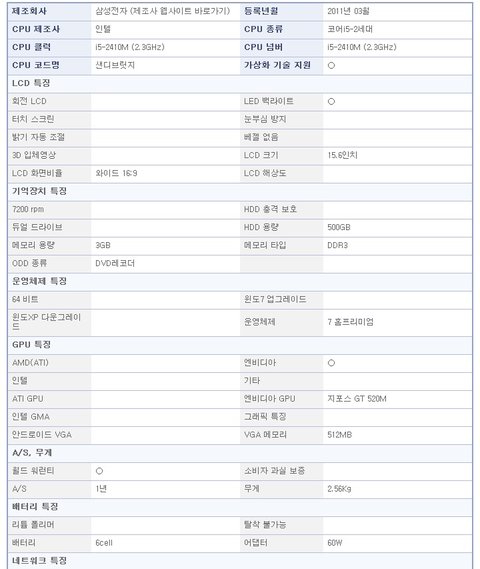 위의 사양을 가진 노트북이 2011년도 제가 다니는 직장에서 10대 구입한 노트북 사양입니다.