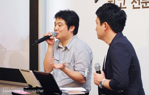 원태연 작가는 글을 쓸 때 먼저 공포를 느끼고, 그 뒤엔 써야 한다는 압박 그리고 고요의 과정을 거친다고 합니다. 그는 “한 문장을 써보면 내가 이 글을 이어갈 수 있을지 없을지 알 수 있다.”고 말했는데요. 그 첫 문장이 그 글의 지도가 되는 셈이죠. Tab Class 참가자들은 갤럭시탭10.1의 펜 메모 기능으로 갤럭시탭10.1에 저장된 사진을 보며 각자의 자유로운 상상을 써봤습니다.