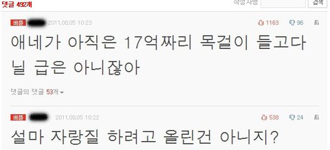 그냥 당신들이 써 놓은 저 베플이 켤코 정당한 게 아니란 것말 알아주십시오.
