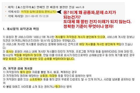 내 개인정보 침해 당한 건 무시하면서 고작 이런 글하나 맘대로 쓰지 못하게 하는