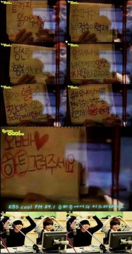 라디오 생방중에 하트를 그려달라는 팬의 요청에 하트를 그려주는 그룹