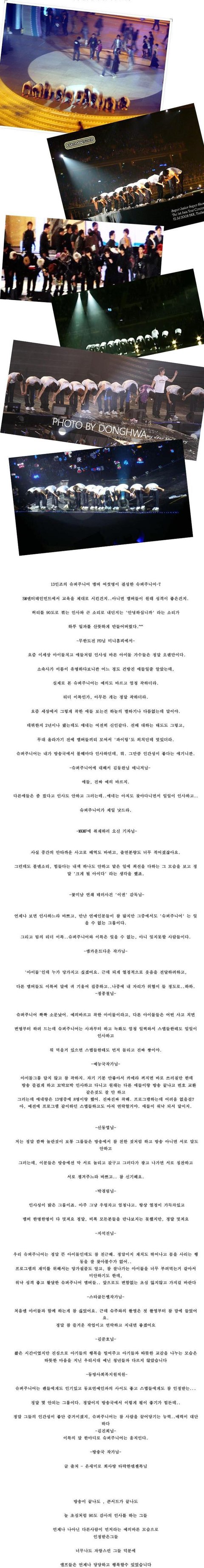 대형 콘서트나 우리 단독 콘서트때나.. 언제나 항상 기대 이상으로 자리 꽉꽉 다 채워주시고 진짜 멋진 이벤트 해주실때 가슴진짜 가슴깊이서부터 감동이 막 오구요, 진짜 많이 감사드리구요 -From.이동해-
