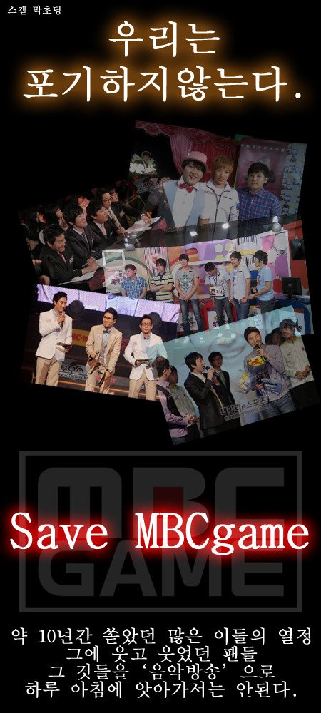 여러분들이 함께 도와주셔서 음악방송 전향을 막아주시고 MBCgame을 지켜주세요