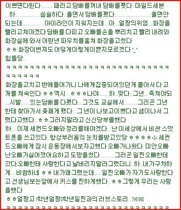 안녕하세요 ㅠㅠ이게 실제라고 믿진안으시겠져 ㅠㅠㅠㅠㅠㅠㅠㅠㅠ여러분 제가 꽃수이라고하시는분도계시고그러는데여...꽃순이가누군지도몰ㄹㅏ여 이건단지 재미로 제가 즉흥적으로 친구랑대화하다가 심심해서 쓴거 그래로 복사해서 올린겁니당ㅠㅠ