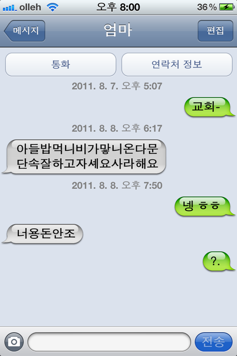 앞으로는 엄마한테 문자는 꽉꽉 채워보내야겠음 ..
