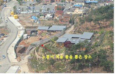 이 사진은 노통이 처음 풀을 뽑으신 위치를 위쪽에서 표시한 것입니다.