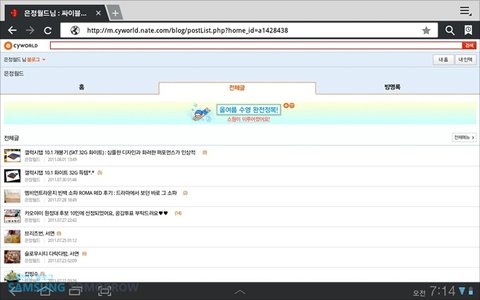 갤럭시탭10.1인치에서 제 블로그를 들어가봤습니다.