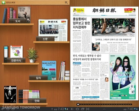 갤럭시탭10.1인치에는 리더스허브가 기본적으로 내장되어 있습니다.