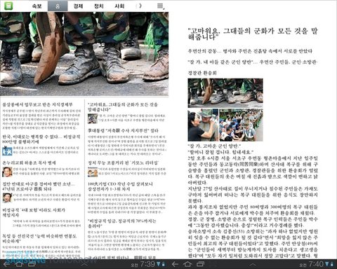 글씨가 작아 보이지만 갤럭시탭10.1에서는 실제 잡지와 비슷한 느낌으로 편하게 볼 수 있습니다.