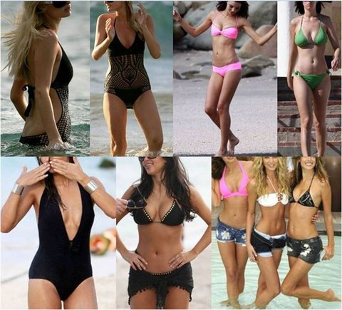 ★ 늘어진 뱃살, 복부비만 - 수영복 하면 가장 먼저 떠오르는 두려움은 바로 '뱃살'입니다. 이럴 경우 가장 추천할 만한 디자인은 허리부분을 랩 스타일로 감싸는 형태의 원피스 수영복, 또는 복부 부분에 화려한 프린트가 있는 수영복이랍니다. 조금 더 슬림해 보이는 효과가 있거든요. 단색보다는 스트라이프나 도트 등 복잡한 패턴이 있는 스타일이 배에 집중되는 시선을 분산시키며 속이 살짝 비치는 카디건을 레이어드 해주면 섹시함까지 더한답니다.