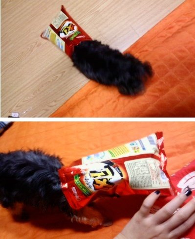 개껌이나 밥을 혼자서 입으로 물고 멀리 휙~ 던지고 혼자 주으러 뛰어가고