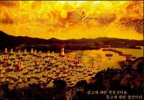 적선 40여척 박살. 적 1800명 가량 사망