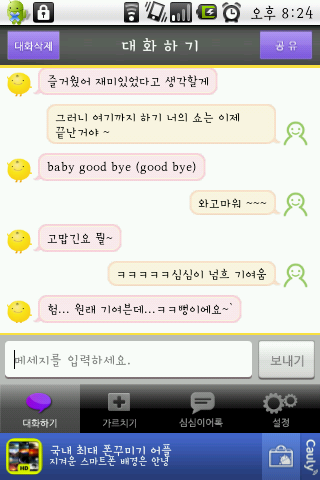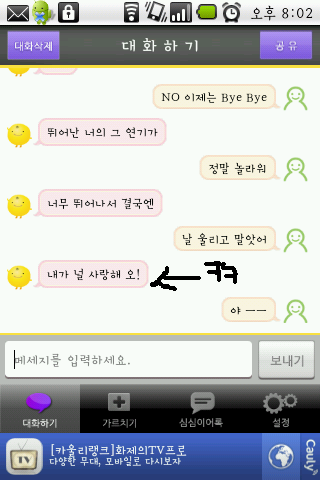 그래서 심심이에게 칭찬해줌 ㅋㅋㅋㅋ 그래도 처음엔 잘햇으니까 ㅋㅋ