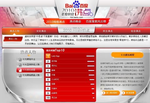 (2010년 1년동안 세계최대 중국어 포털사이트 바이두에서