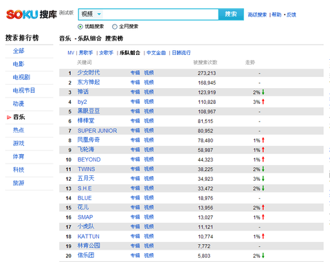 음악부문, 그룹검색랭킹에서 소녀시대 1위