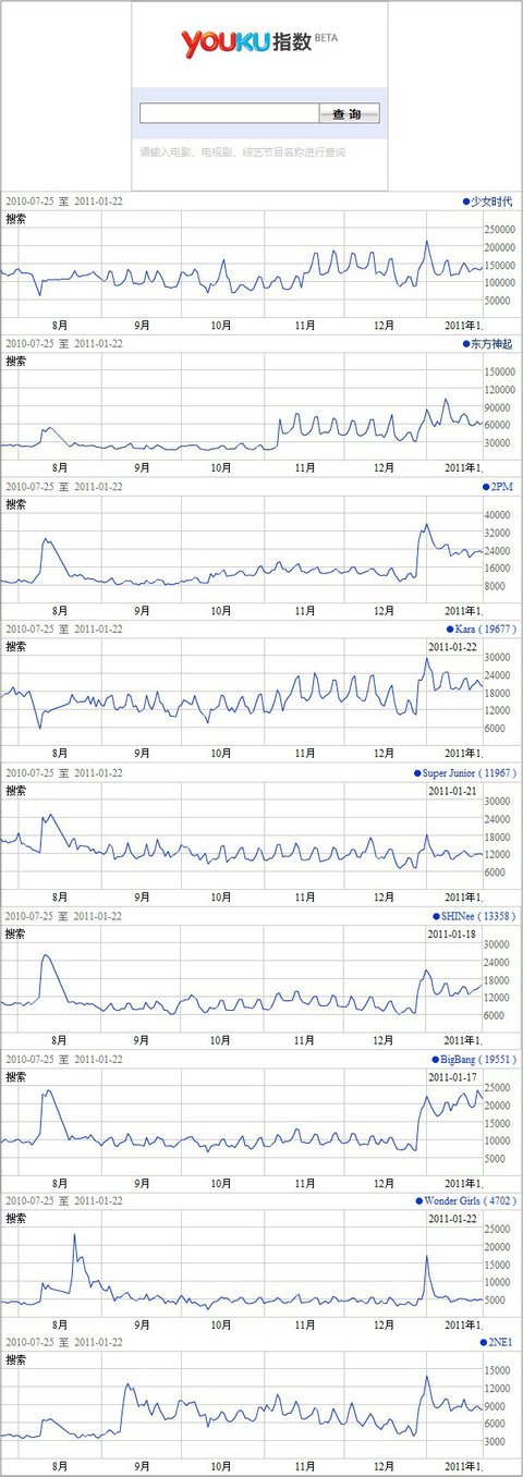 3. youku에서 한국아이돌그룹 검색지수 (2010.7.25~2011.1.22)