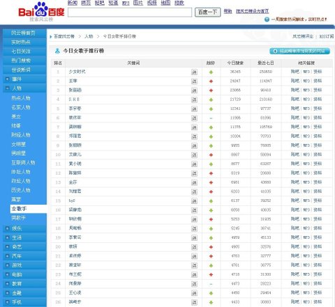 6. 바이두 여자가수 검색순위