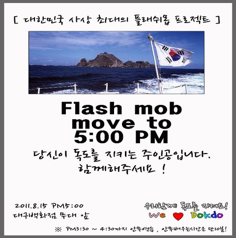 여러분 이번 플래시몹은 독도를 국제분쟁지역으로 가져갈만한