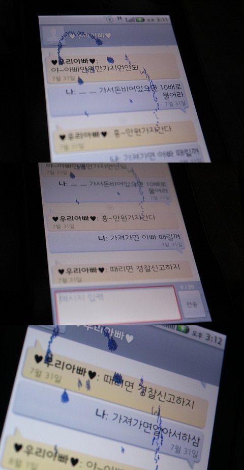 다음날 아빠한테 문자가 왓슴