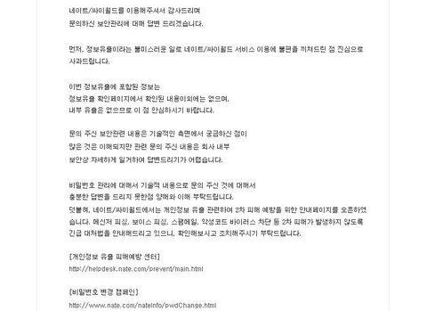 이번 네이트 유출 사건으로 인해 많은분들이 큰 피해를 입으셨을것같은데...(아닌가..)