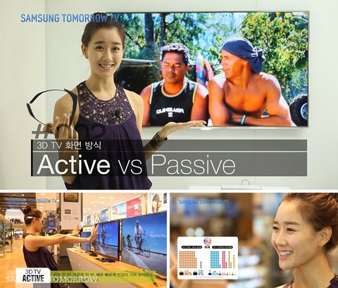3D TV를 사고는 싶은데 Active 방식, Passive 방식이 도대체 뭐지? 하며 궁금해 하는 분들이 많은데요. 그렇다면 시선 고정! 3D TV Active 방식은 3D 카메라가 촬영한 좌우 영상을 순차적으로 표시하는 방식인데요. 왼쪽 한 번, 오른쪽 한 번, 빠르게 번갈아 가면서 보여 준답니다. 고로 매우 고도의 기술이 필요하다는 뜻이죠! 반쪽 화면씩 사용하는 Passive 방식보다 화질이 2 배 더 좋습니다.