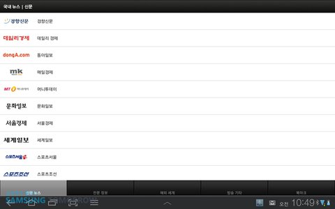갤럭시탭10.1은 10.1인치의 넓은 화면에서 리더스허브(click!)와 각종 언론사 어플을 통해, 다양한 언론사의 신문을 한번에 받아 볼 수 있습니다.
