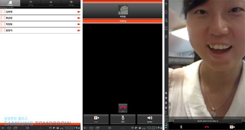 오늘은 갤럭시탭10.1의 넓은 화면을 통해 생생한 사운드로 영상통화를 하는군요.