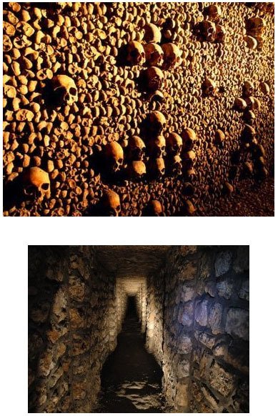 엄청난 양의 해골과 인간의 뼈들이 벽을 이루며 쌓여 있는 곳.