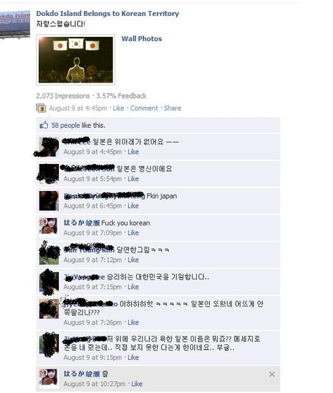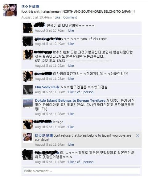 윗 페이스북하면서 대한민국여러분께서 얼마나 독도를사랑하시는지 느꼈습니다.하지만 운영중 어느분이 시비를거셨습니다.일본이름이고 일본인 사진이지만 한국말도 잘하시는분입니다.제가 보기에는 한국분이 그냥 일본인 욕먹을려고 하는것같기도하고 그렇네요..