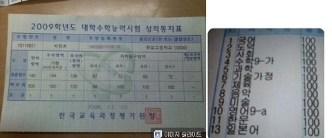 수능만점짜리 통지표를 얻게될꺼라는...