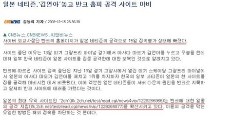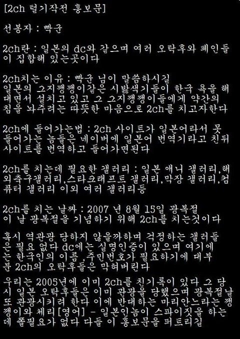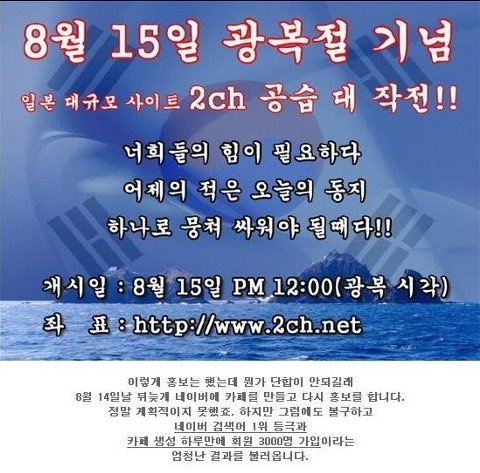 8월 15일날 광복절을 기념해 2ch을 공격하자고 입을 맞춤