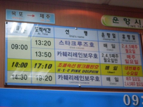 ▲ 툴이 됐다 안됐다;;; 목포 -> 제주도, 제주도 -> 목포가는 배 시간표입니다. 혹시 가실분들 참고!!