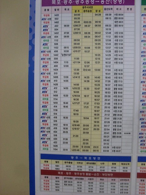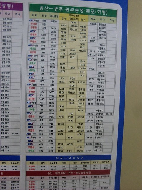 ▲ 입구 옆에 붙어있는 기차 시간표. 유용합니다.