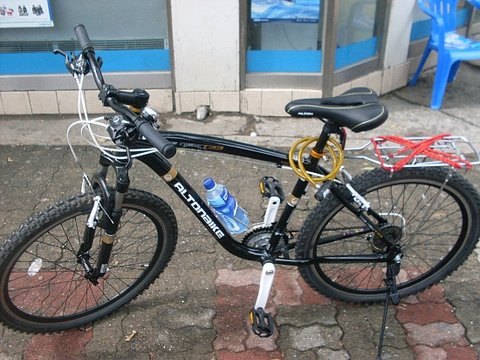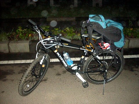 제 배낭과 자전거... 밑에 이온음료는... 가다 지쳐서 샀습니다. 나중에 글 제일 밑에 썼던 돈 써놓은거 보
