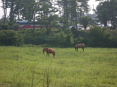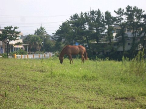 ▲ 길거리에 방목해서 키우는 말들. 제주도 답달까요?