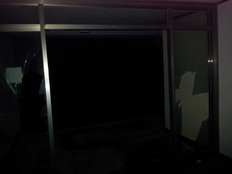 위험하게 깨진 유리창들과 앞도잘 안보이는 어둠 ㅋㅋㅋ 본격적으로 건물안으로 들어갑니다.