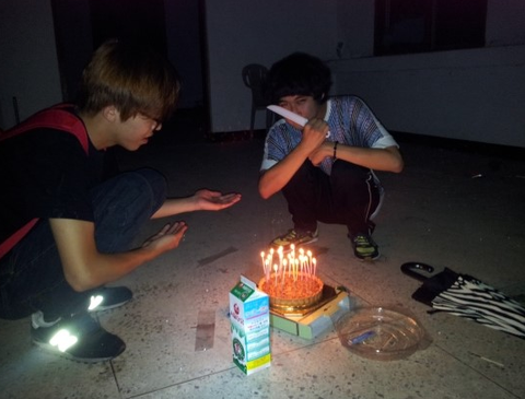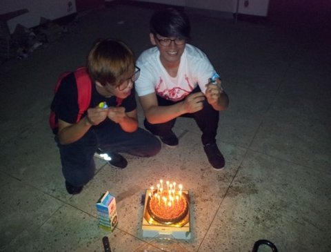 3명이서 급조해서 가게된 것이 여서 딱히 준비를 못했습니다. 그래서 그냥 촛불불고 폭죽이나 터치고 케익(저희는 호두파이였습니다)이나 잘라먹자는...그런 조촐한 파티였습니다![]()