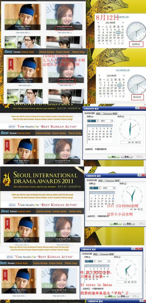 다음의 사진은 중국팬분들이 12일부터 오늘까지 캡처잡고 투표증가분 분단위로 체크하고 정리해 놓은신 겁니다.