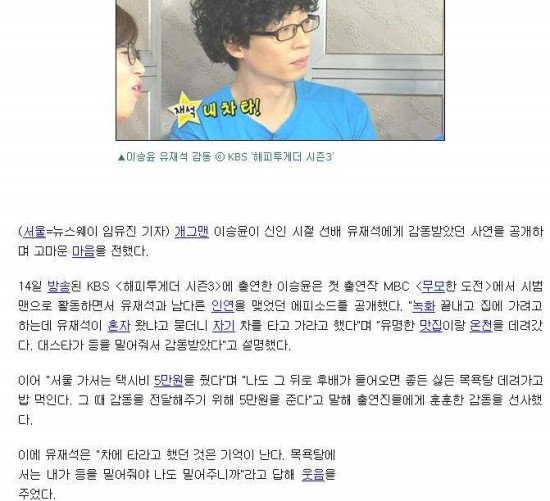 이 같은 글이 인터넷을 통해 화제가 되면서 현재 네티즌들은 유재석에 대한 칭찬을 아끼지 않고 있다.