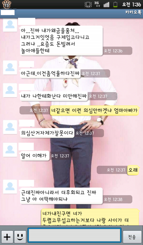 또 연예인이랑 사진찍은것을 친구2와 친구3에게 보내서 자랑하고 카톡 사진으로도 해놓고 정말 상식적으